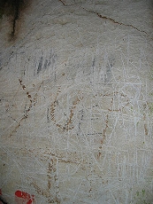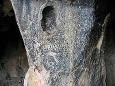 Felsnischen im Eingangsbereich mit Inschriften | |