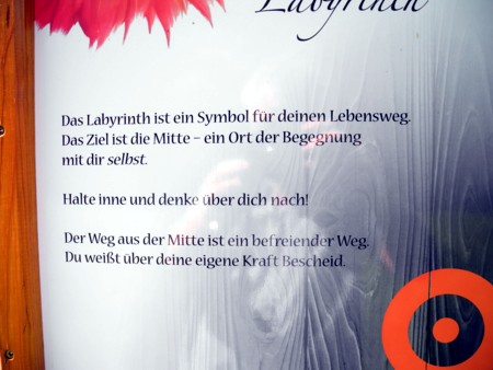 | 11. Mai 2005 | der zentrale Punkt war gerade von einem Bobbycar belegt, das aber noch, während ich das Labyrinth durchschritten habe, wieder "heimgeholt" wurde von von einem Kind. |