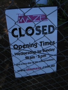 Die TOURING MAP "TASMANIA" des RACT, die im Jahre 2006 viele Touristen bekommen haben, enthält im nördlichen Abschnitt von Tasmanien, südlich von Ulverstone und westlich von Sheffield in der Nähe von Staverton die Eintragung "MAZE". Ich hab es zwar gesehen, wollte auch hin, aber war die Beschilderung unglücklich, ich nahm die falsche Straße, umkehren war lange nicht möglich, so fuhr ich weiter.