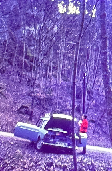 1967 Frühstück auf dem FIAT von Sigi Tange bei der Linkenboldshöhle/Schwäbische Alb |