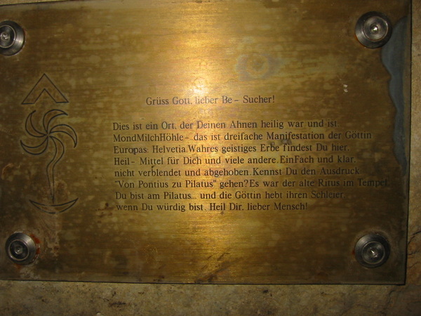 Gedenktafel in der Grotte