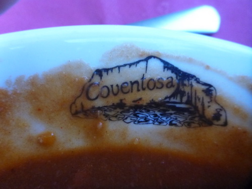 Im Restaurant "Coventosa", der Name eines sehr großen Höhlensystems im Val d'Ason, Kantabrien, bekommt der Gast das Essen auf Tellern, die eigens mit Höhlenmotiven versehen worden sind.. |