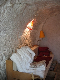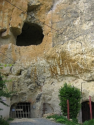 Eine ganze Reihe von Höhlenwohnungen ist heute zu vermieten. Als wir es Mitte August 2005 mal probierten, war leider alles ausgebucht, was kein Wunder war, denn da sind ja alle Franzosen unterwegs. Eine andere "Höhle" wirbt damit, daß es dort auch eine Fontaine-Pétrifiante gibt, also eine Quelle, wo sich schnell Kalk auf Gegenständen ablagert, die man dem Wasser aussetzt. Und dann gibt es auch noch einen "Puits-qui-Parle", der ein außergewöhnliches Echo haben soll.