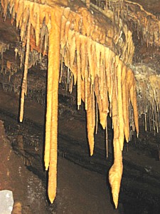 Die bekannteste typische Erscheinungsform der Höhlen, die Tropfsteine. In jeder Schauhöhle, wo sie vorkommen, wird den Besucher erzählt, daß sie soundsolange brauchen, bis sie auch nur einen einzigen Zentimeter gewachsen sind. Und die Zahl im immer viel höher als unser menschliches Lebensalter überhaupt beträgt.
